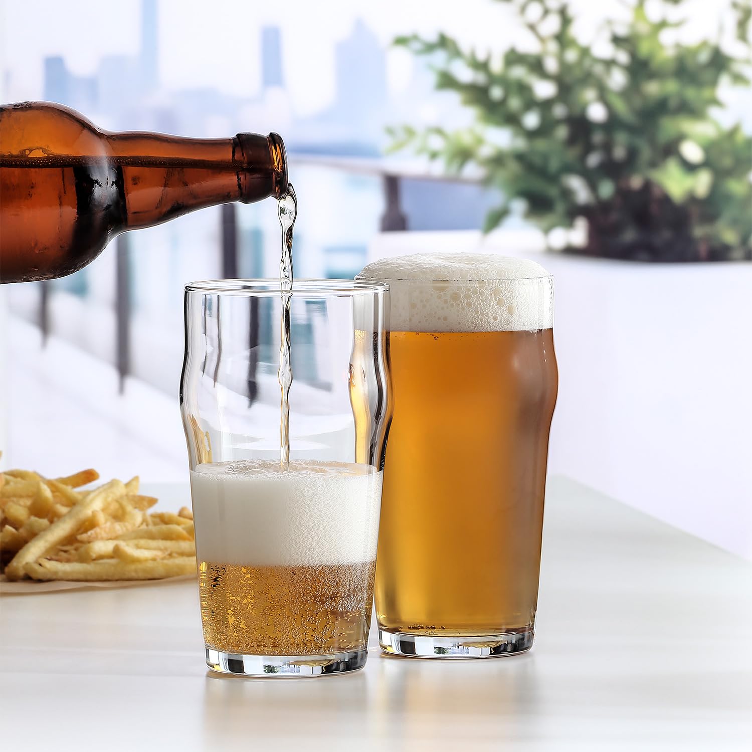 - Space Saving Design - LAV's pint glasses drinking set have a traditional British pub glasses design, which helps easy stacking of each beer glass in the set. Our clear drinking glasses can be easily stored in bar cabinets or counters at home.